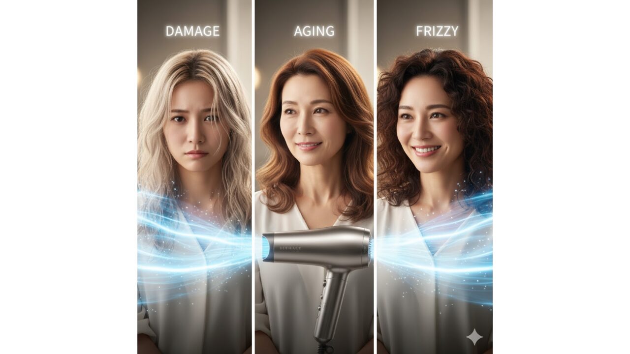 この技術のおかげで、私たちは何も意識することなく、ただ髪を乾かすだけでオーバードライ(乾かしすぎ)を防ぎ、髪に必要なうるおいを閉じ込めることができます。日々のドライヤー時間が、髪を傷める時間から「髪をいたわる時間」へと変わるのです。